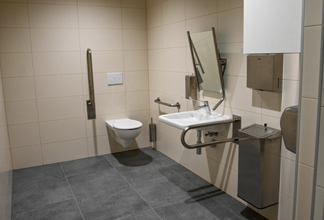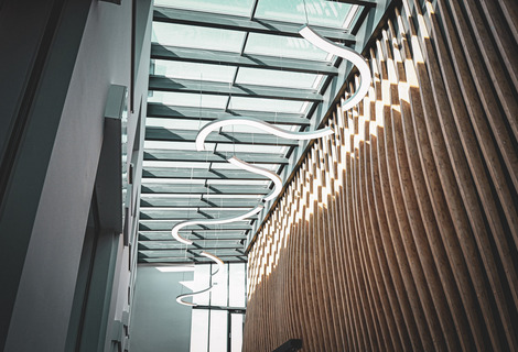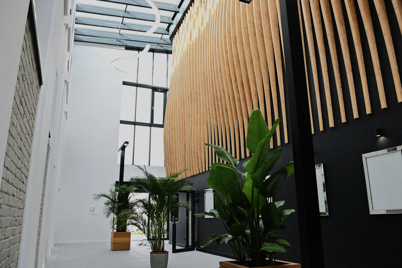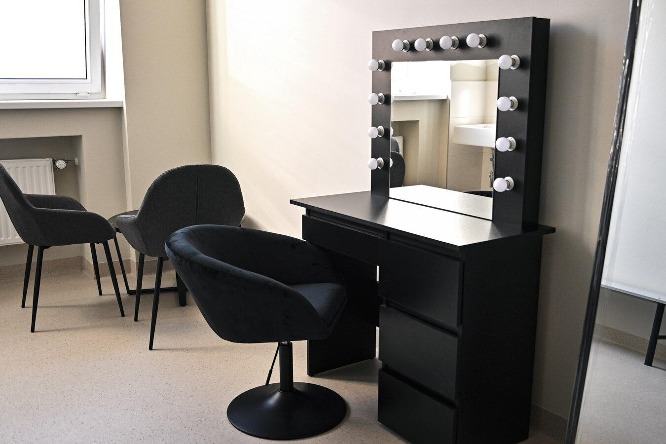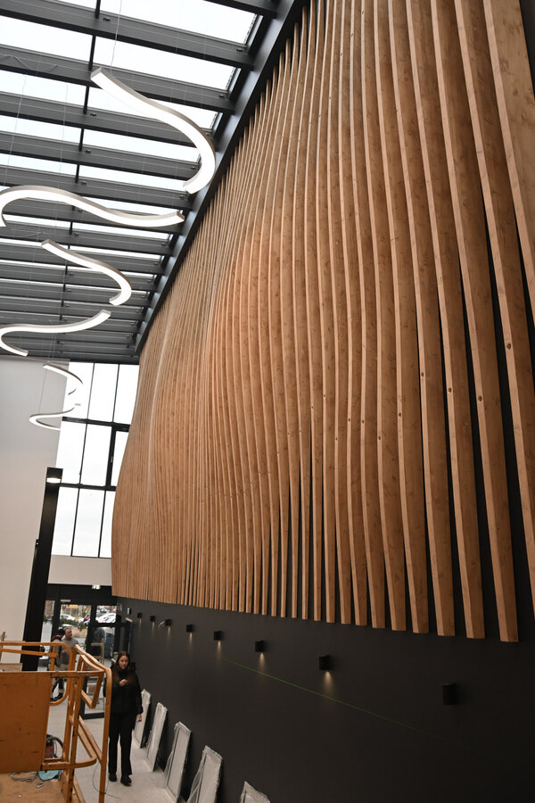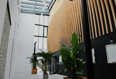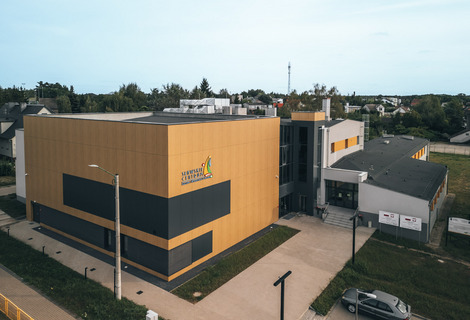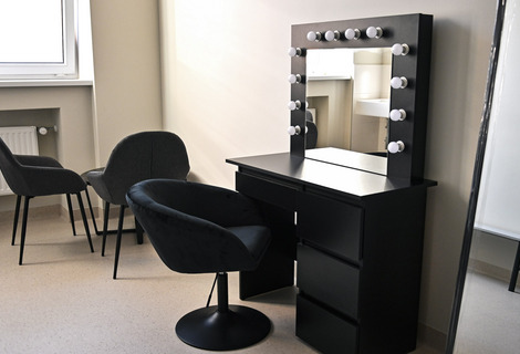 Wnętrze budynku zostało starannie zaprojektowane, łącząc funkcjonalność z estetyką. Obiekt oferuje także wygodne zaplecze socjalne, garderoby dla artystów oraz przestronne toalety dla gości. Ciekawym rozwiązaniem jest szklany łącznik, który stanowi przestrzeń idealną na organizację wernisaży, spotkań kulturalnych czy innych wydarzeń towarzyszących.