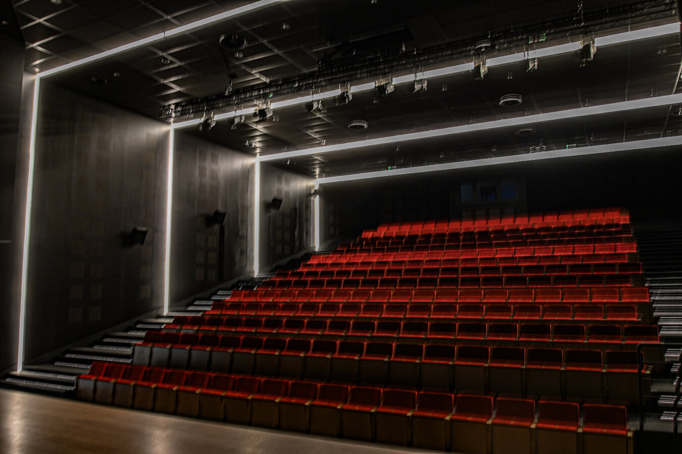 Obiekt posiada przestronną widownię, mieszczącą blisko 300 osób, co pozwala na organizację wydarzeń o różnej skali. Sala została wyposażona w najnowszą technologię audio-wideo, co zapewnia doskonałą jakość dźwięku i obrazu, idealną do zarówno teatralnych przedstawień, jak i seansów filmowych czy koncertów. Dodatkowo, scena o powierzchni 80 m² oferuje dużą przestrzeń do realizacji różnorodnych produkcji artystycznych.